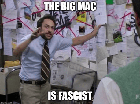They also included the following variation on a popular meme implying that, despite the well-documented usage of “Mac Tonight” by white supremacists, it is conspiratorial to associate the fast food restaurant campaign with racism: